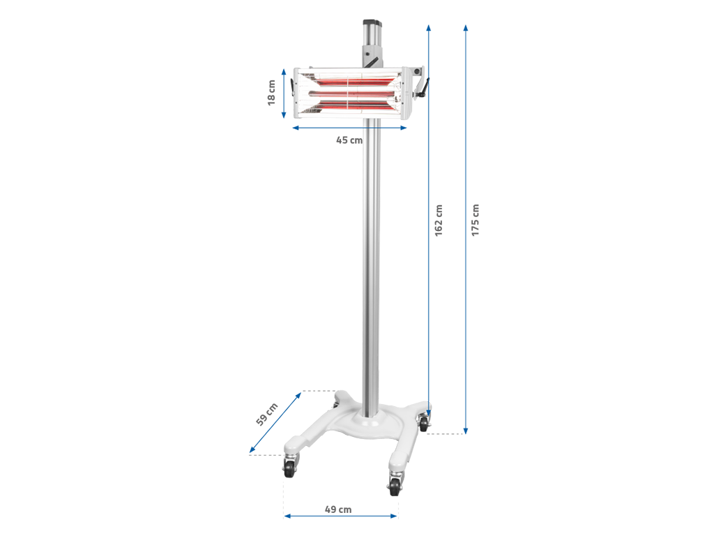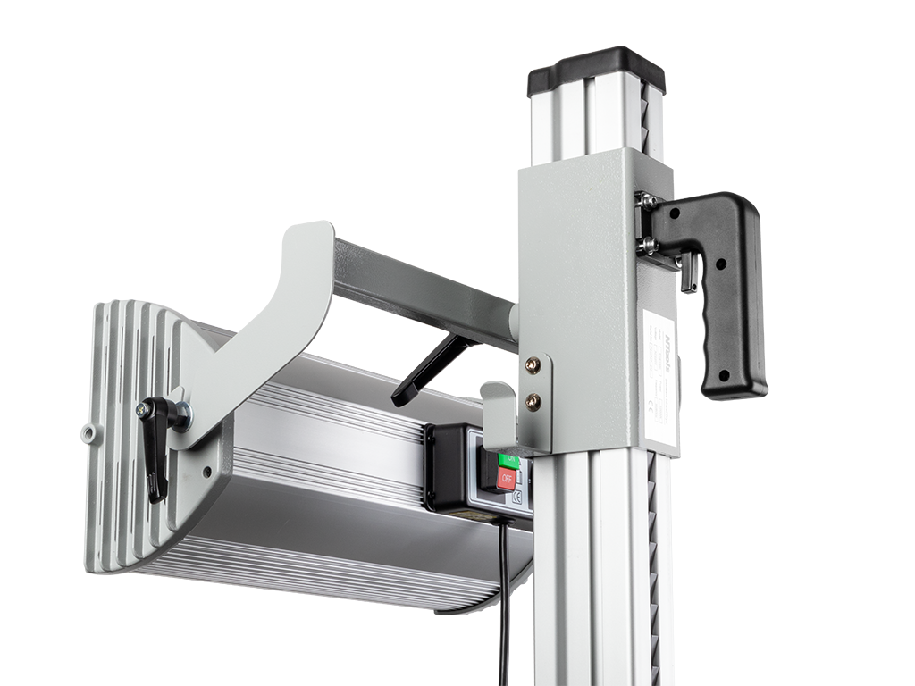 Promiennik FDS1000 wyposażony w jedną regulowaną lampę o mocy 1000 W o dużym zakresie ustawień, daje możliwość suszenia większości płaszczyzn występujących w samochodach. Regulacja czasu odbywa się manualnie za pomocą pokrętła.
