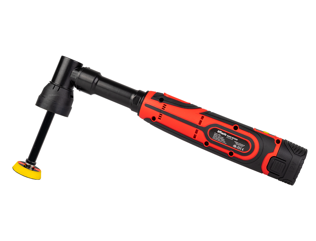 NTools NANO BP3550 - Polerka do trudnodostępnych miejsc. Dzięki wyposażeniu jej w akumulator, niweluje konieczność używania przewodu, co dodatkowo ułatwia pracę. Wyjątkowość tego urządzenia podkreśla również możliwość pracy w trybie rotacji jak i dual action (w zależności od założonej głowicy). Polerka doskonale współpracuje z dwiema tarczami 35 i 50 mm, co skutkuje wszechstronnością zastosowania i doskonale sprawdzi się w ciasnych, trudno dostępnych miejscach. Dołączone do zestawu 2 baterie, o krótkim czasie ładowania pozwalają na zachowanie ciągłości pracy, zarówno w wykorzystaniu profesjonalnym, jak również w przydomowych warsztatach.