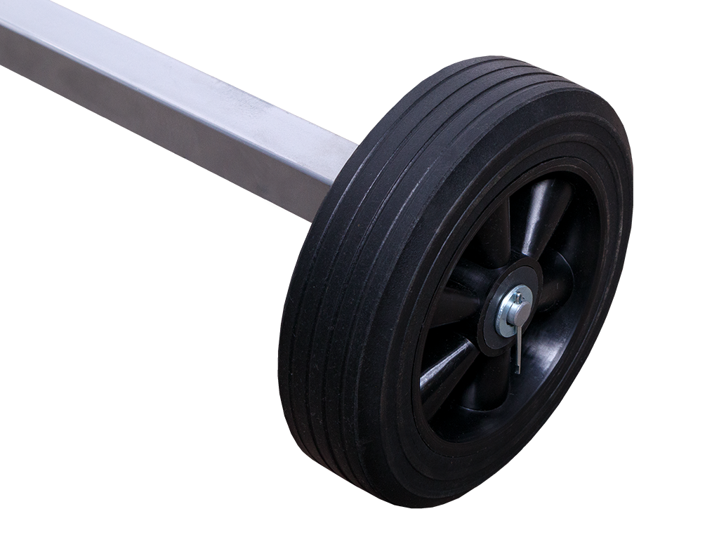 Mechanizm obrotowy stojaka z zębatą blokadą odblokowywaną nogą, umożliwia łatwe obracanie i blokowanie naprawianego elementu pod dowolnym kątem. Koła o szerokości 52 mm i średnicy 180 mm umożliwiają swobodne przemieszczanie stojaka wraz z elementem po warsztacie.