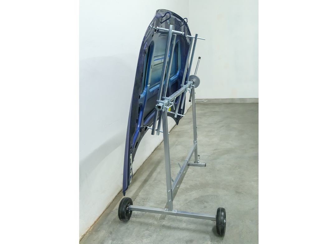Wydłużony stojak (2220 mm) przeznaczony do lakierowania dużych elementów auta dostawczego albo 2 standardowych elementów z auta osobowego (np. drzwi prawe i lewe) oraz szlifowania i polerowania. Umożliwia pewne i stabilne zamocowanie dowolnych elementów karoserii za pomocą regulowanych zaczepów dopasowanych do otworów technologicznych blach karoseryjnych dowolnych modeli pojazdów.