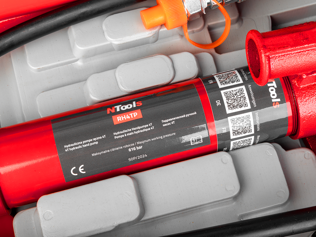 NTools RH4T - Rozpierak hydrauliczny do karoserii auto powypadkowych oraz do wykonywania prac warsztatowych. Przeznaczony jest głównie do rozpierania, rozciągania, wyciągania, podnoszenia, zginania, prostowania. Pompa ręczna może być używana w położeniu zarówno poziomym, jak i pionowym. Przy pozycji pionowej końcówka węża hydraulicznego musi być zawsze skierowana w dół. Urządzenie zostało fabrycznie napełnione olejem hydraulicznym, ale przed użyciem należy sprawdzić jego poziom.