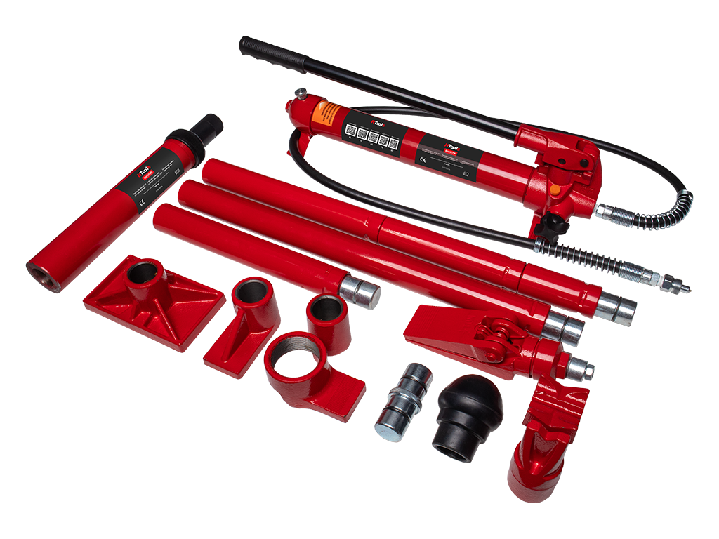 NTools RE10T - Rozpierak hydrauliczny do wyciągania i rozpierania karoserii aut powypadkowych oraz do wykonywania prac warsztatowych. Przeznaczony jest głównie do rozpierania, rozciągania, wyciągania, podnoszenia, zginania, prostowania. Pompa ręczna może być używana w położeniu zarówno poziomym, jak i pionowym. Przy pozycji pionowej końcówka węża hydraulicznego musi być zawsze skierowany w dół. Urządzenie zostało fabrycznie napełnione olejem hydraulicznym, ale przed użyciem należy sprawdzić jego poziom.